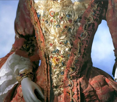 В XVIII столетии предпочитали ткани с более мягкой и светлой гаммой, нежными переходами от розового к голубому, светло-желтого к бежевому. Цветочные орнаменты были характерны как для мужской, так и для женской одежды.