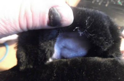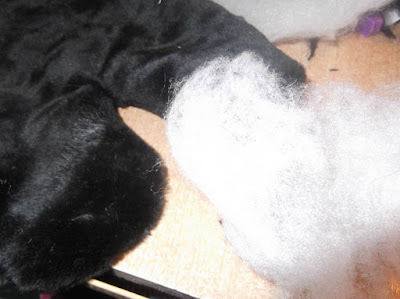 Некрасивое место вклейки кости я решила украсить с помощью приваливания шерсти коричневого и красного цвета. По-моему получилось очень правдоподобно.