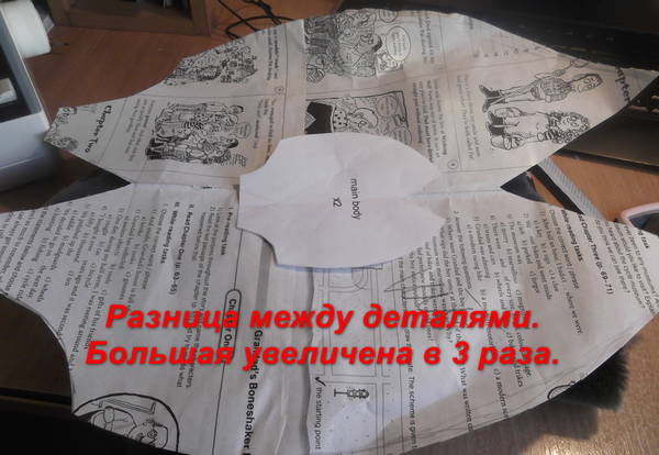 Для создания жертвы амонг аса используем имеющуюся уже выкройку. Сгибаем ее пополам и обводим на ткань нижнюю часть.