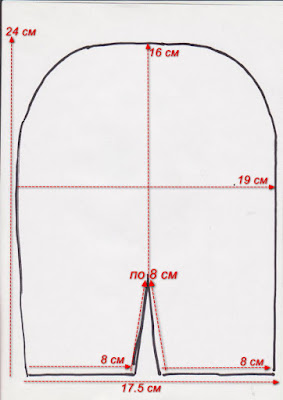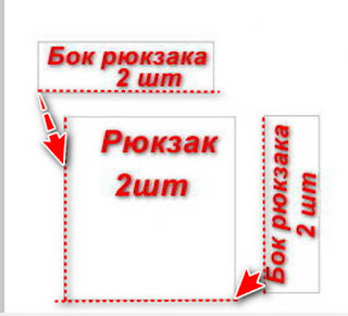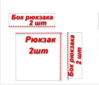 Последняя деталь — рюкзак, вырезаем прямоугольник шириной 19 см и высотой 13 см.