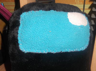 Так же пришила к игрушке большой овал обмёточным швом. Что бы пришить ровно, проведите линии мелом на игрушке, где должен располагаться овал. В эту деталь так же добавила синтепона для объёма.