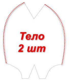 2. Сшиваем вместе две детали Тело лицом к лицу по схеме ниже.