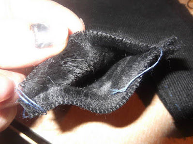 2) Пришиваем к детали Стекло скафандра деталь Блик потайными стежками, подворачивая края. Что бы легче и аккуратнее пришить, наживите в одну нитку подворот.