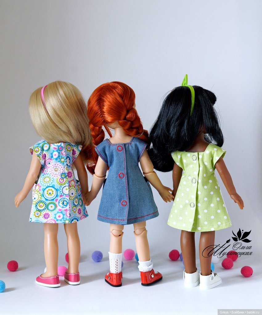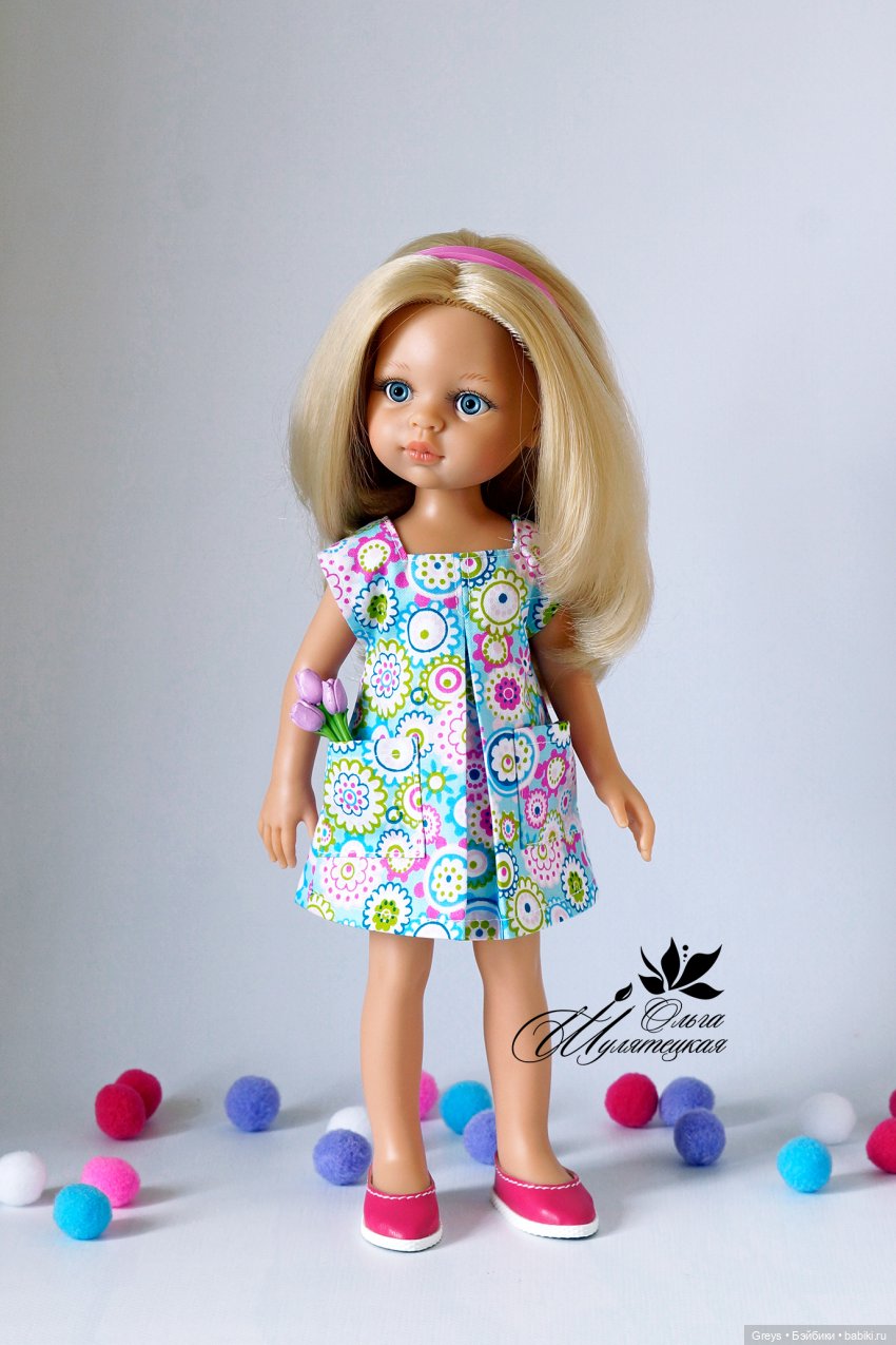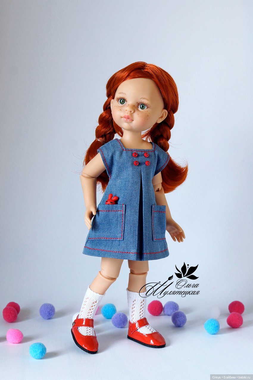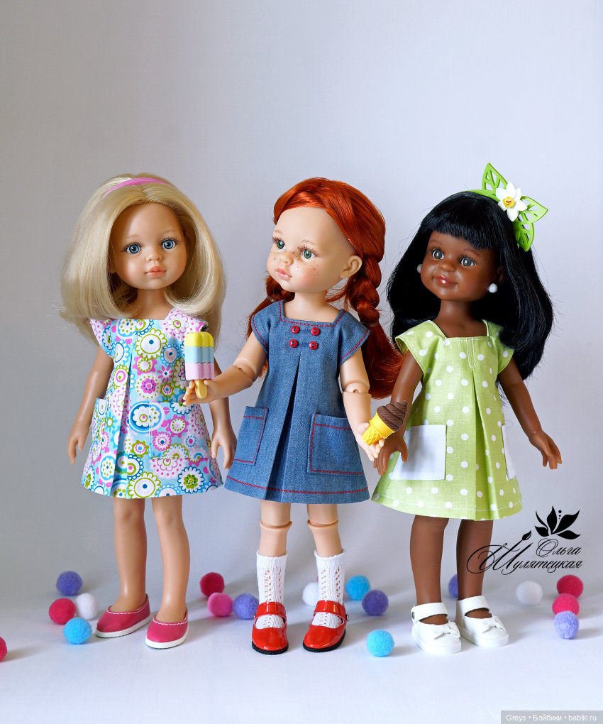 Выкройка подходит для Паола Рейна ростом 32-34 см любого года выпуска и на кукол с похожей фигурой — Бержуан, Антонио Хуан, Ллоренс 30 см и Руби Ред SIBLIES 31 см. Объем груди у них немного различается, для более стройных фигурок застежку нужно перенести чуть дальше от края.