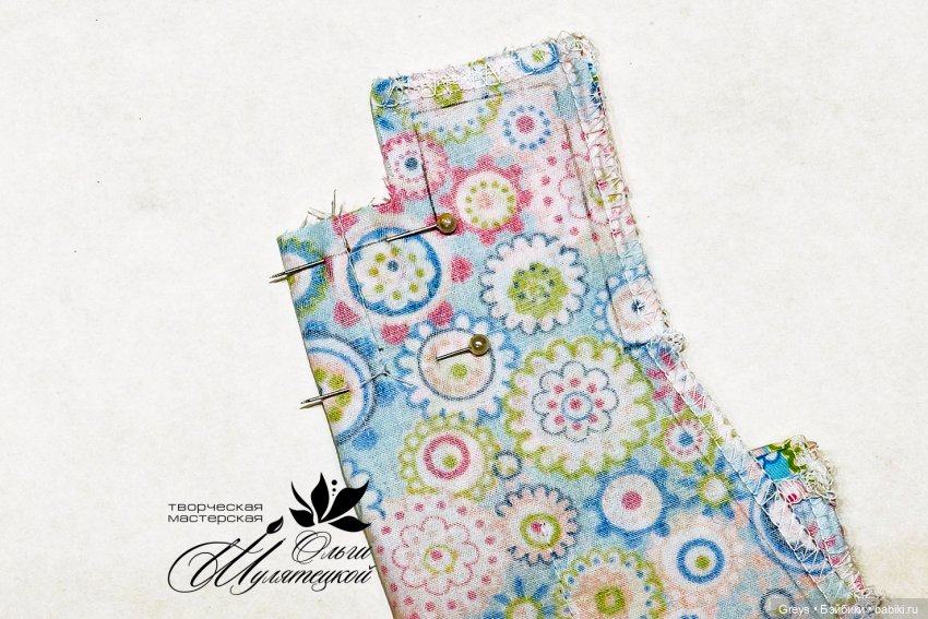 3. Подверните и заутюжьте нижние и боковые края карманов (те, что смотрят к центру платья).